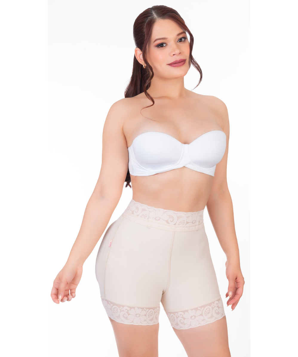 Short largo, talle alto, siliconado en cintura y piernas, realce de glúteos. Large short, high waistline, silicone lace in waist and legs, butt lift